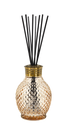 The design of the Originelle Honey Reed Diffuser is inspired by one of Maison Berger Paris’s most iconic catalytic lamps. Its glass body in a voluptuous oblong shape reveals the fine work of the famous diamond-point pattern. The aged bronze latticework ring is a harmonious crown to the design, while the honeyed, slightly amber hue is soft and soothing. The Oriental Star fragrance is sensual and enveloping, with top notes of zesty bergamot melded with delicate red fruit and velvety vanilla. This deep, intoxicating fragrance and the warm tones of the reed diffuser will transform your home into a soothing fragrant cocoon.