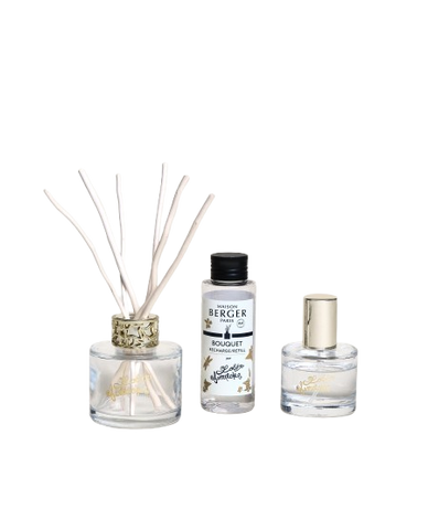The Lolita Lempicka Transparent Mini Bouquet & Home Spray Duo is the result of a creative collaboration between Lolita Lempicka and Maison Berger Paris. This collection conjures a modern fairy tale, inviting you to escape into a world of dreams. The Lolita Lempicka fragrance opens with the freshness of ivy leaves, star anise and the gentle sweetness of liquorice flower. At its heart, violet leaf, cherry and iris lend a delicate, feminine floral signature. The base notes of tonka bean, creamy woods, caramel and cistus labdanum offer a warm, enveloping finish. This duo includes a scented bouquet and a home spray, allowing you to tailor the fragrance to your mood. The spray delivers between 450 and 550 spritzes, while the bouquet gently perfumes your rooms for weeks on end.
