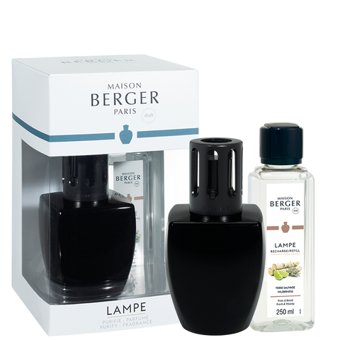 Lamp sold in a gift set with accessories: wick-burner, heavy shiny silver straight diffuser cap, stopper, and funnel + 250ml Wilderness home fragrance.