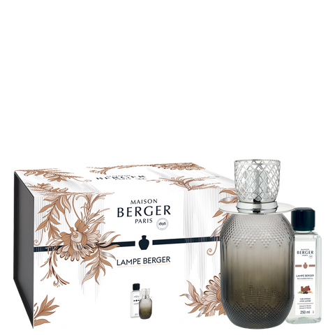 Lamp sold in a gift set with accessories: wick-burner, round silver diffuser cap, stopper, funnel + 250 ml Mystic Leather home fragrance.
